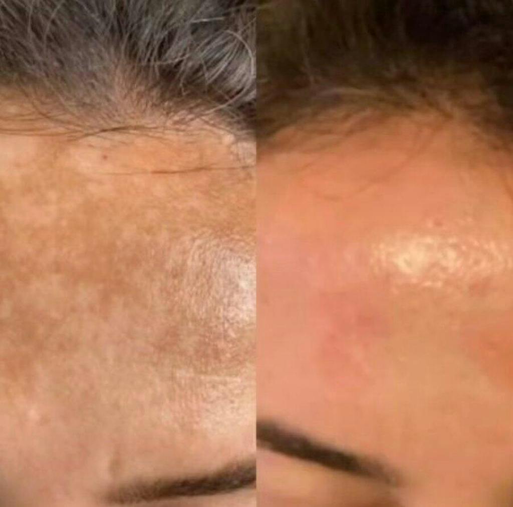 Ich sehe deutliche Unterschiede in der Aufhellung und Reduktion meiner Flecken auf der Haut. Besonders auf der Stirn was man hier sehen kann. jetzt versteh ich wieso die Creme immer ausverkauft ist