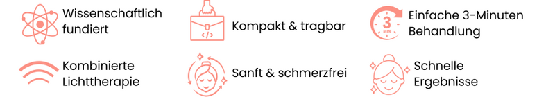 Jede Sitzung dauert nur 3 Minuten und lässt sich daher problemlos in Ihre tägliche Hautpflegeroutine integrieren. Dank seines kompakten und tragbaren Designs eignet sich das Gerät perfekt für den Einsatz zu Hause oder unterwegs. Viele Anwender berichten von sichtbaren Verbesserungen bereits nach 2 bis 3 Anwendungen .