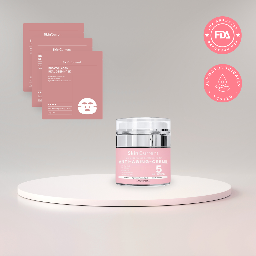 Was macht dieses Set so besonders? Wir haben eine wirkungsvolle Anti-Aging-Creme und drei intensive Kollagenmasken kombiniert, die wie ein Präzisionsinstrument zusammenarbeiten. Es ist nicht nur Hautpflege – es ist Hautoptimierung.
