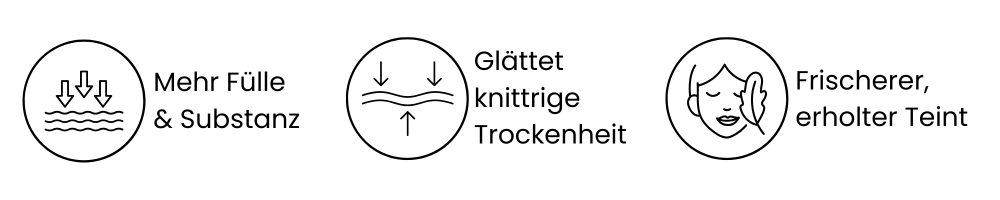 Während Hyaluron oft schnell verfliegt, nutzt unsere Formel 1,96% Trehalose (aus der Wüstenrose). Dieser Wirkstoff schließt Wasser tief in der Zelle ein und verhindert den typischen "Pergament-Effekt", bei dem die Haut im Laufe des Tages trocken und papierartig wird.