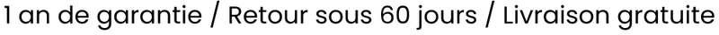 Garantie : Notre garantie d'un an couvre les défauts de fabrication et offre un remplacement gratuit si l'appareil s'avère défectueux dans le délai imparti.