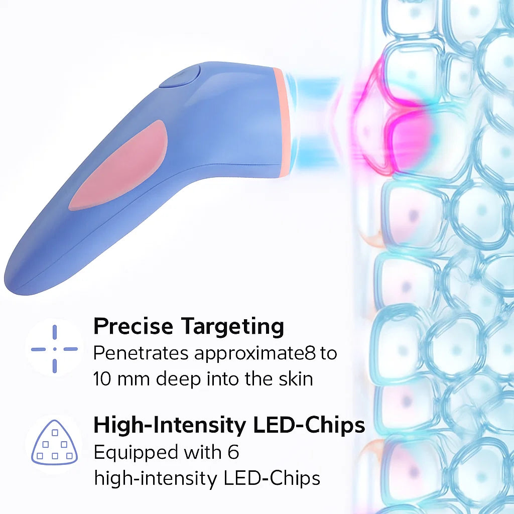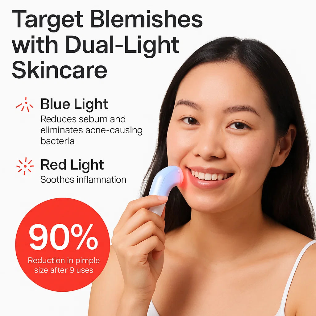 Luttez contre l'acné et réduisez l'inflammation grâce à notre appareil innovant de traitement de l'acné, doté d'une technologie éprouvée de lumière rouge et bleue. Cette luminothérapie non invasive et indolore cible les boutons, les imperfections et les irritations cutanées pour des résultats durables.